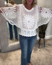 Bluse mit Spitzen-Hohlstickerei in einfarbig