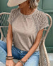 Top Mode einfarbig Häkelspitze Ärmel Patchwork