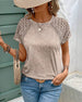 SPEZIFIKATIONEN Oberteil Typ: Blusen Stil: Zwanglos Material: Baumwollmischungen Anlass: Täglich Ausschnitt: Rundhalsausschnitt Muster Typ: Einfarbig Ärmel Typ: Raglanärmel Ärmellänge: Kurze Ärmel Passform Typ: Normal Jahreszeit: Frühling,Sommer Einzelheiten: Aushöhlung,Spitze Paket enthält: 1 x Bluse GRÖSSENTABELLE (cm) Größe Brsutmfang Län...