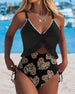 Badeanzug Schnürung Leopardenmuster Zweiteilig