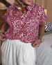 modische bluse mit leopardenmuster und V-ausschnitt sowie patchwork-spitze
