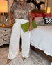 Modische hose in einfarbiger farbe mit unregelmäßigem patchwork und taschen