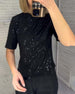 Pailletten-Top mit Ballonärmeln und Rundhalsausschnitt