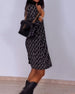 Einfarbiges kleid mit rundhalsausschnitt und langen ärmeln und tasche