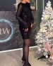 SPEZIFIKATIONEN Stil: Sexy Material: A: 95% Baumwolle, 5% Spandex; B: 100% Polyester Kleid Typ: Bodycon Kleid Länge: Knielang Ausschnitt: V-Ausschnitt Muster Typ: Pailletten Ärmel Typ: Regulärer Ärmel Ärmellänge: Lange Ärmel Einzelheiten: Schlitz Passform Typ: Normal Jahreszeit: Herbst,Winter Anlass: Party Paket enthält: 1 x Kleid GRÖSSENT...