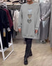 Oberteil mit unregelmäßigen Knöpfen und Buchstabenmuster