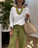 SPEZIFIKATIONEN Stil: Zwanglos Oberteil Typ: Hemd Kategorie: Sets Material: Baumwollmischungen Ausschnitt: Stehkragen Ärmel Typ: Regulärer Ärmel Ärmellänge: 3/4 Ärmel Hose Typ: Gerades Bein Länge der Hose: Lang Taille Typ: Hohe Taille Passform Typ: Normal Jahreszeit: Frühling,Sommer Einzelheiten: Patchwork,Tasche Anlass: Täglich Paket enthält:...