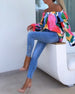 Lässiges kleid mit tiefem V-ausschnitt und leoparden- und buntem aufdruck