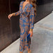 Elegantes bedrucktes Kleid mit V-Ausschnitt und Krawatte