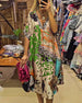 MERKMALE Elegantes V-Ausschnitt-Design: Das elegante V-Ausschnitt-Design hebt die bezaubernde Halslinie perfekt hervor und verleiht dem Gesamtlook einen Hauch von Eleganz und Charme. Exquisite Drucke: Die einzigartigen und exquisiten Drucke sind wie Kunstwerke, die den Rock verzieren und Sie überall zum Blickfang machen und Ihren Modegeschmac...