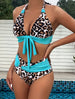 modische bluse mit leopardenmuster und V-ausschnitt sowie patchwork-spitze