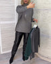 Top Mode einfarbig Häkelspitze Ärmel Patchwork