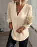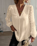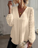 Top Mode einfarbig Häkelspitze Ärmel Patchwork