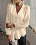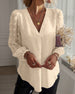 Bluse 3D-Blume Laternenärmel V-Ausschnitt