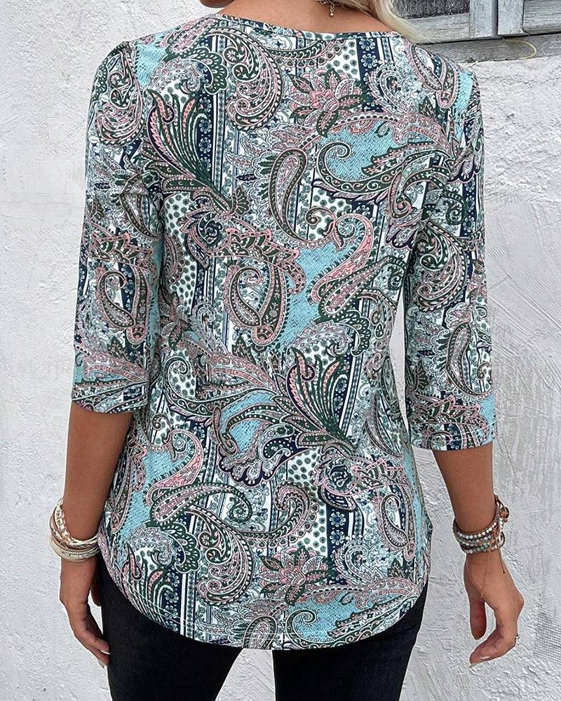 Shirt mit V-Ausschnitt und Laternenärmeln, bedruckt