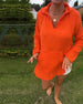 Lässiges, einfarbiges langarmhemd mit v-ausschnitt und knopfleiste