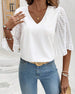 Top Mode einfarbig Häkelspitze Ärmel Patchwork