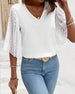 Modische bluse mit V-ausschnitt und laternenärmeln in einfarbiger farbe