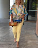 Lässiges oberteil mit schmetterlingsspitzen-patchwork und tasche