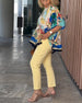 modische bluse mit leopardenmuster und V-ausschnitt sowie patchwork-spitze