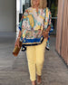 Shirt mit V-Ausschnitt und Laternenärmeln, bedruckt