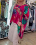 Bunt bedrucktes taschenkleid mit v-ausschnitt und halbarm