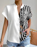 modische bluse mit leopardenmuster und V-ausschnitt sowie patchwork-spitze