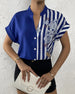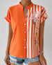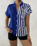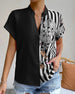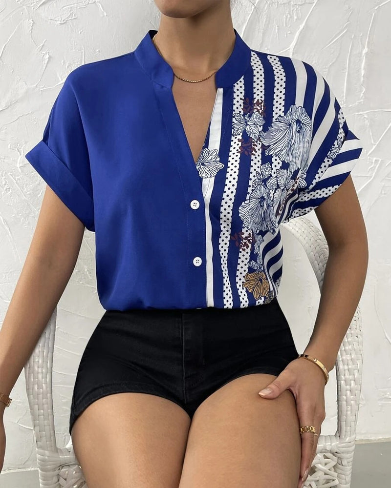Bluse im Bahnen-Blumendruck mit Knopf und kurzen Ärmeln