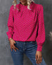 Modische bluse mit V-ausschnitt und laternenärmeln in einfarbiger farbe