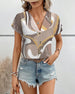 modische bluse mit leopardenmuster und V-ausschnitt sowie patchwork-spitze