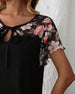 Top Mode einfarbig Häkelspitze Ärmel Patchwork