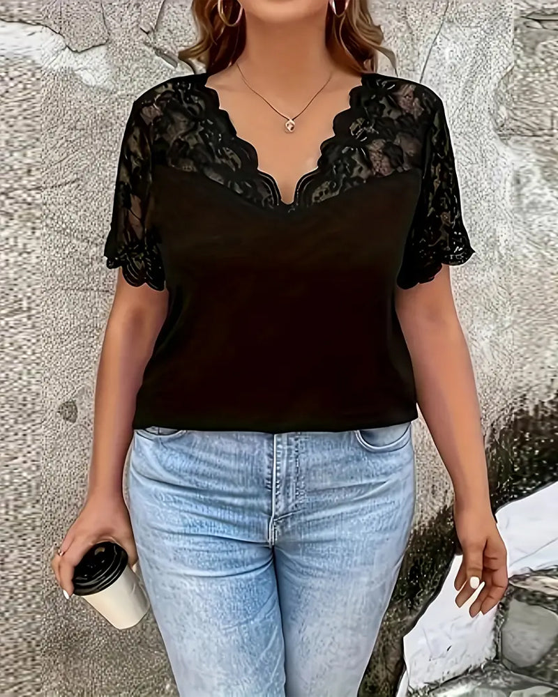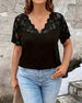 Top Mode einfarbig Häkelspitze Ärmel Patchwork