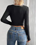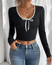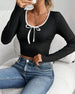 Schlichtes, einfarbiges, elegantes Langarm-Top mit V-Ausschnitt