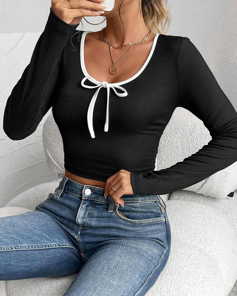 Top Mode einfarbig Häkelspitze Ärmel Patchwork