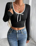 Langarm-Spitzenoberteil mit V-Ausschnitt