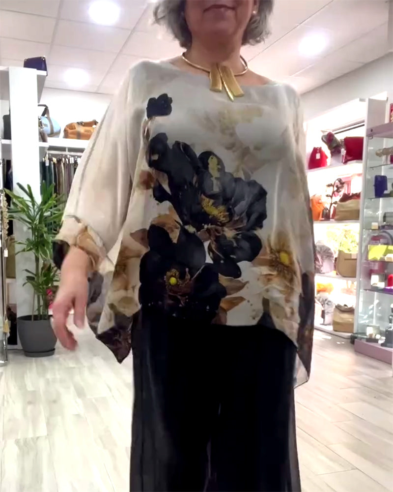 Bluse Langarm Unregelmäßig Großes Blumenmuster