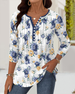 Shirt mit V-Ausschnitt und Laternenärmeln, bedruckt