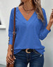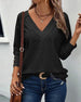 Bluse lässig V-Ausschnitt hohl einfarbig