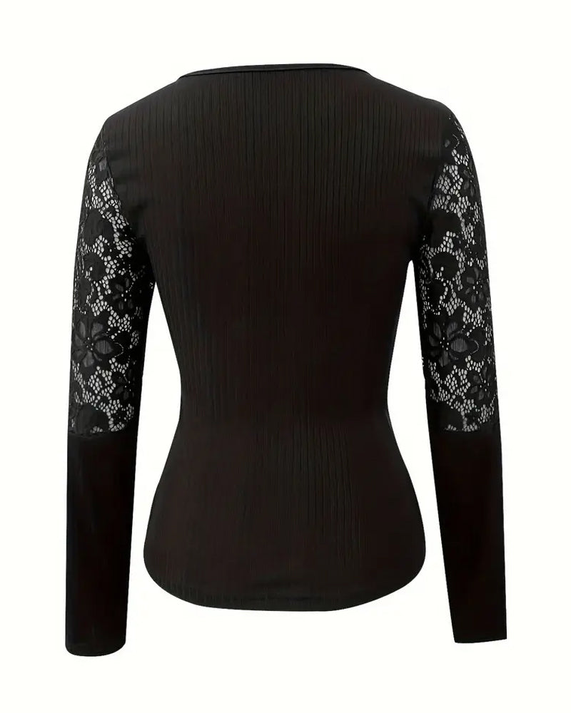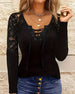 Top Mode einfarbig Häkelspitze Ärmel Patchwork