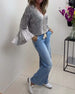 Lässiges, einfarbiges oberteil mit pailletten und v-ausschnitt