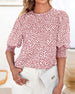 Lässige bluse mit rundhalsausschnitt und leopardenmuster