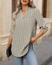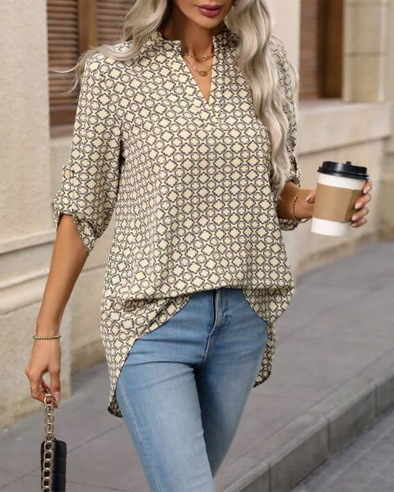 Shirt mit V-Ausschnitt und Laternenärmeln, bedruckt