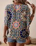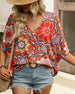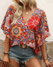 Shirt mit V-Ausschnitt und Laternenärmeln, bedruckt