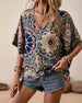 modische bluse mit leopardenmuster und V-ausschnitt sowie patchwork-spitze