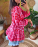 Bunt bedrucktes taschenkleid mit v-ausschnitt und halbarm