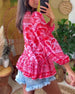 Bluse mit tiefem v-ausschnitt und blumenmuster