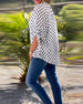 modische bluse mit leopardenmuster und V-ausschnitt sowie patchwork-spitze