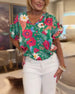 Bluse mit V-Ausschnitt Blumenmuster Kurzarm