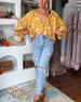 Shirt mit V-Ausschnitt und Laternenärmeln, bedruckt