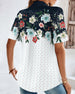 Lässige bluse mit kapuze und blumenmuster und kurzen ärmeln